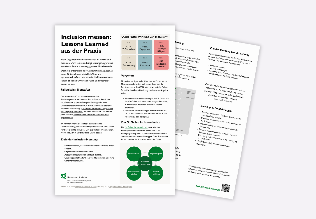L’index d’inclusion de Saint-Gall est un outil de mesure de l’inclusion sur le lieu de travail. Il a été développé en 2020 en collaboration avec le Bureau fédéral de l’égalité pour les personnes handicapées (BFEH), le CDI-HSG (aujourd’hui intégré au CCDI) et MindStep AG (aujourd’hui Health & Medical Service AG).